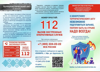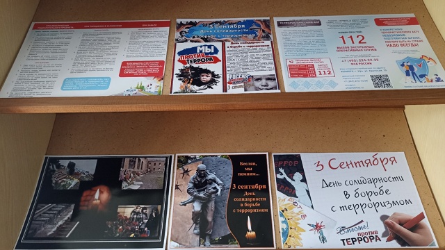 | 3 сентября в нашей стране ежегодно отмечается день консолидации государства и общества против действий террористов – День солидарности в борьбе с терроризмом. В Юлдыбаевской сельской библиотеке к этому Дню оформлен информационный уголок «Наш мир без террора». Информация поможет узнать о том, что такое терроризм, каковы его цели, правила поведения в условиях террора. На выставке представлены памятки «Терроризм – угроза обществу». | |